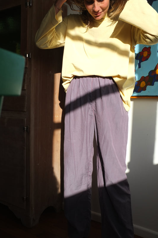 Scrunchie Pants – Blue and Red Pin Stripe