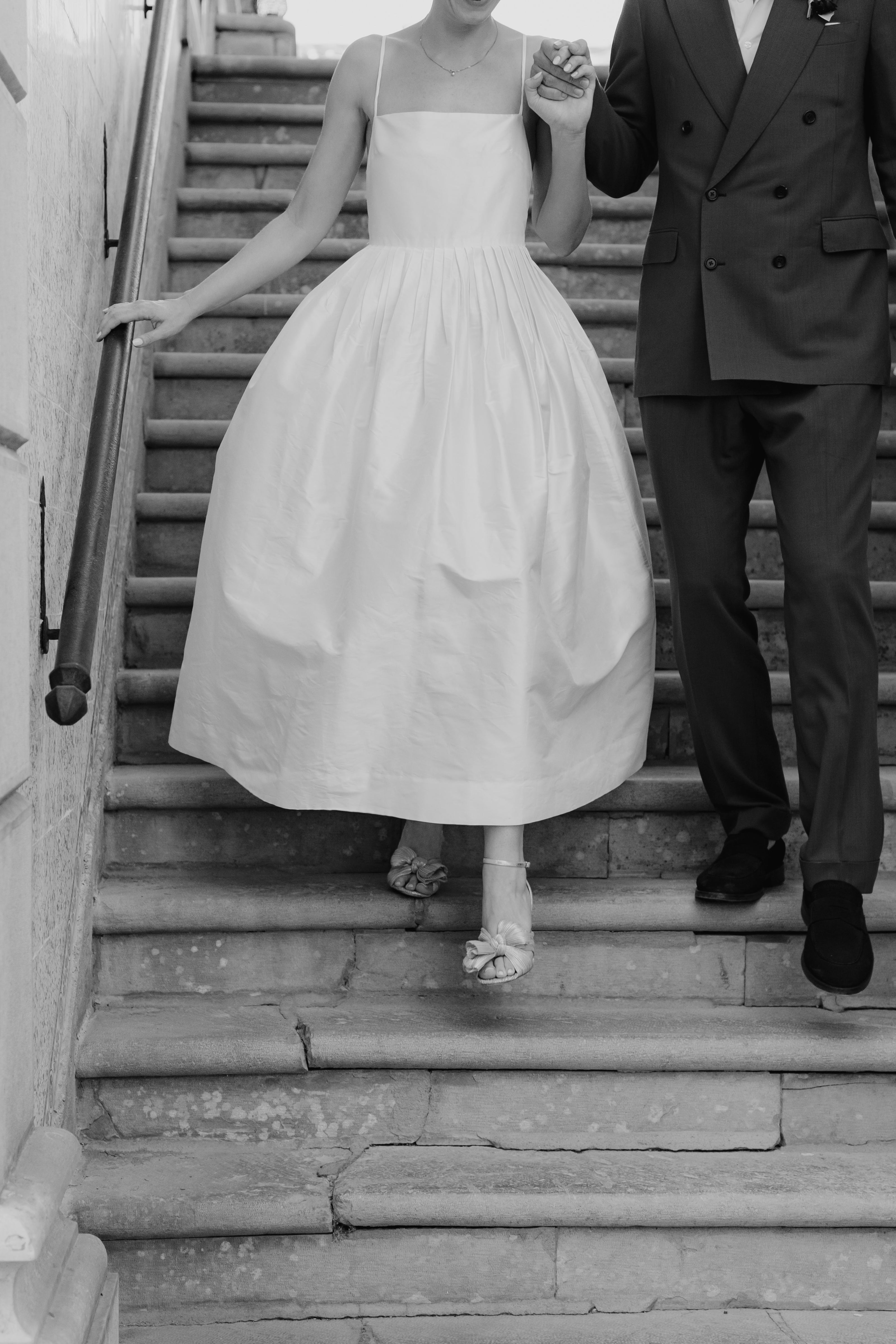 Custom wedding dresses start at $2500, requiring a non refundable $500 deposit at the first fitting.