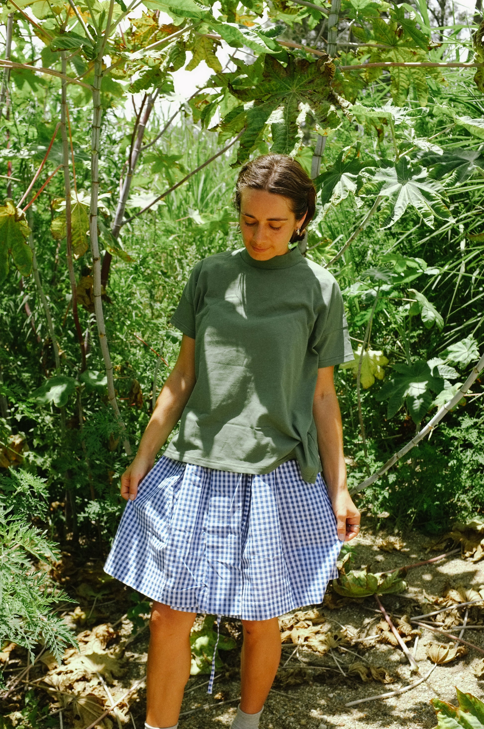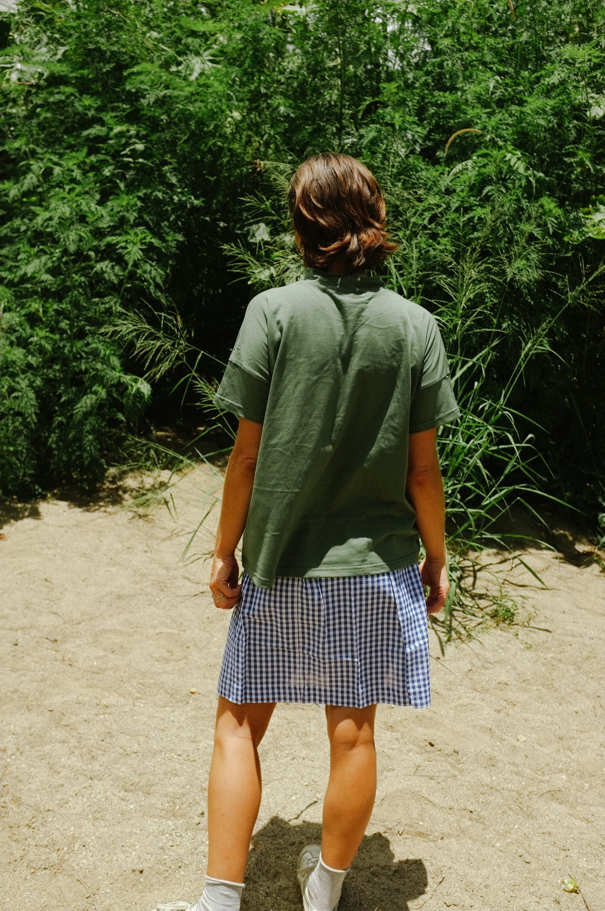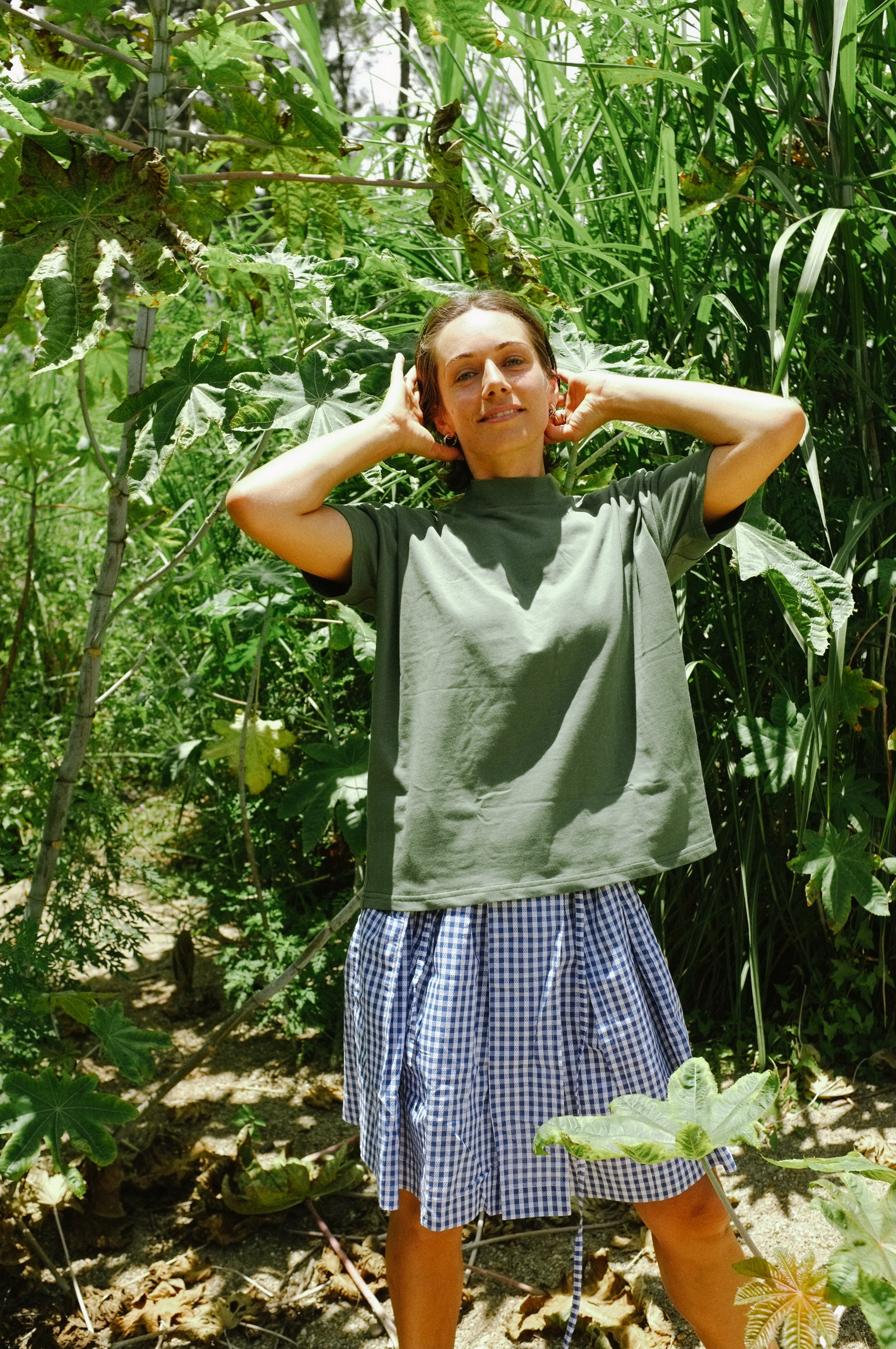 Boxy Tee Shirt with short sleeves and dropped shoulders, sitting just below your hips, and a high ribbed neck, which will slip over your head with ease.
