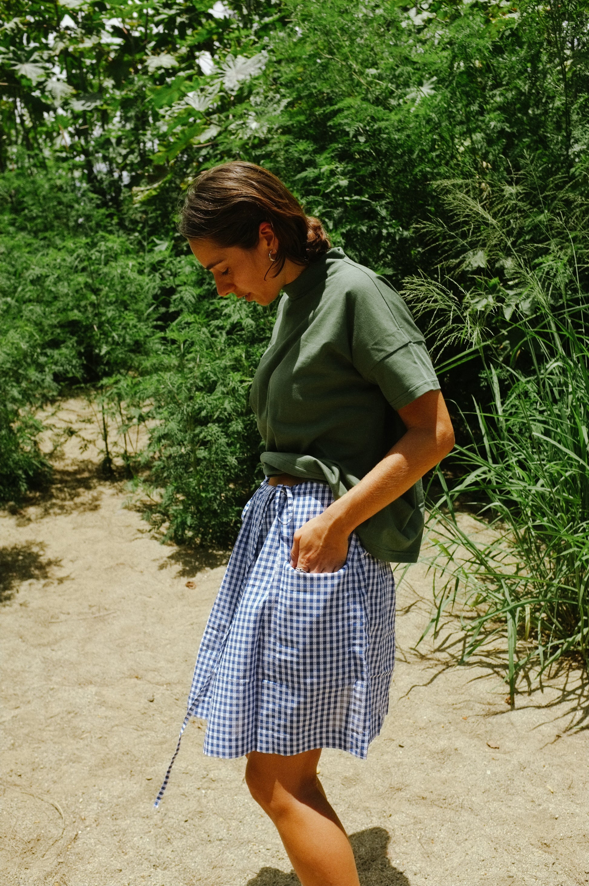 This top has been designed, pattern made, cut and sewn by Mimi Holvast in Australia, with solar panels powering all machinery.