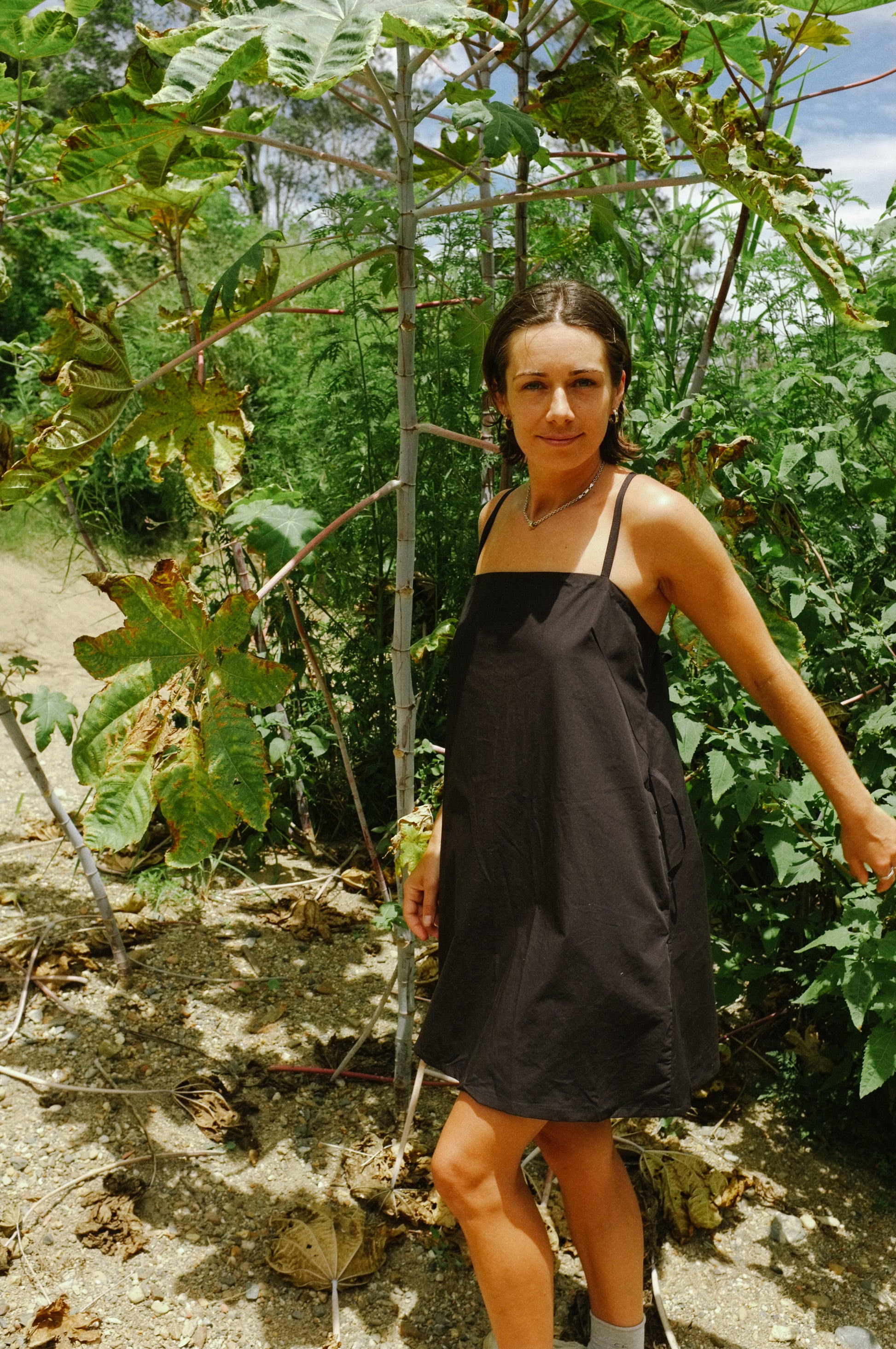 This dress has been designed, pattern made, cut and sewn by Mimi Holvast in Australia, with solar panels powering all machinery.